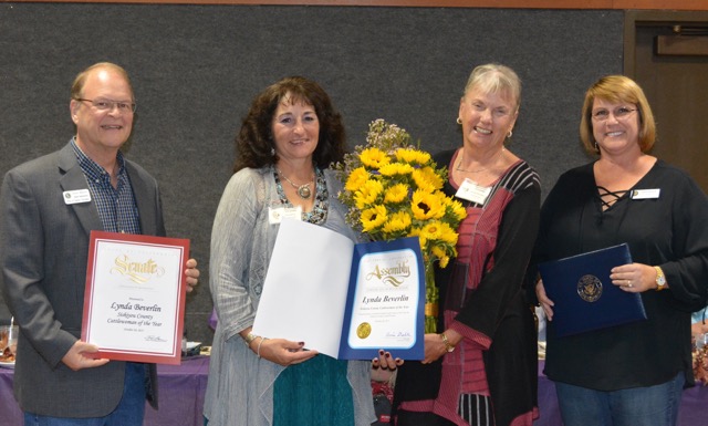 (L-R: Dave Meurer representing Senator Ted Gaines office, Tara Porterfield SCCW President, Lynda Beverlin 2017 CattleWoman of the Year, and Erin Ryan representing Congressman Doug LaMalfa’s office)